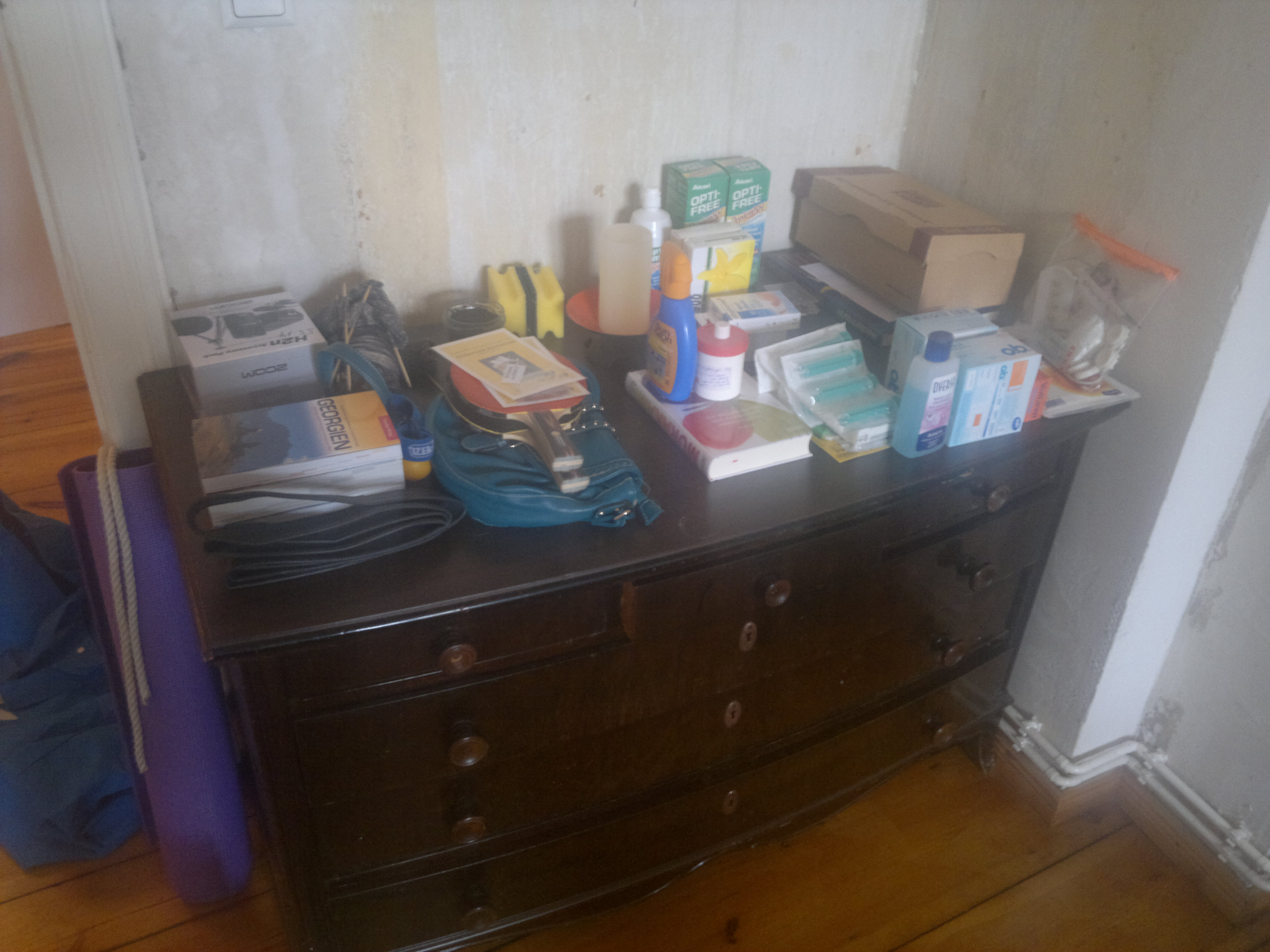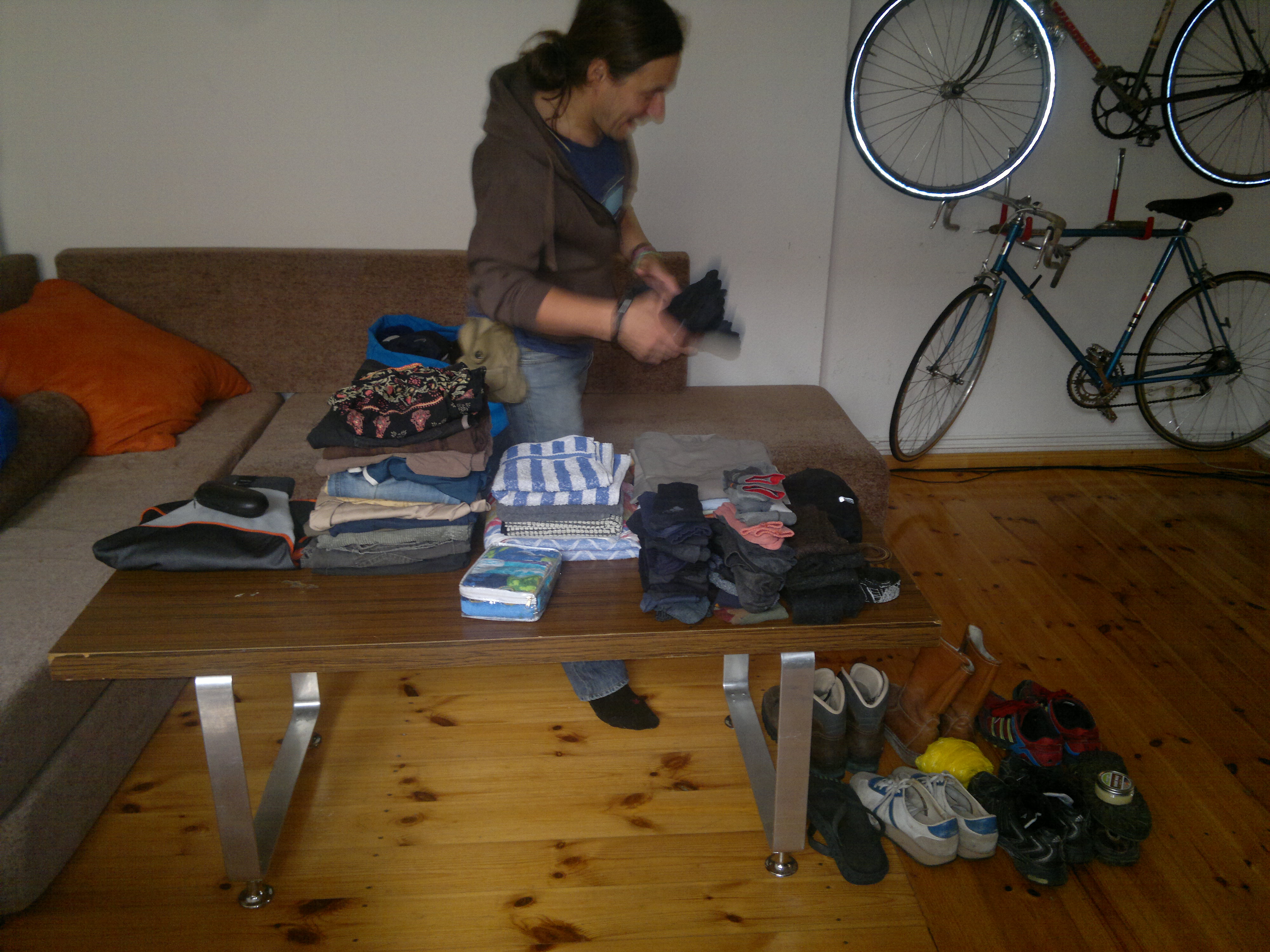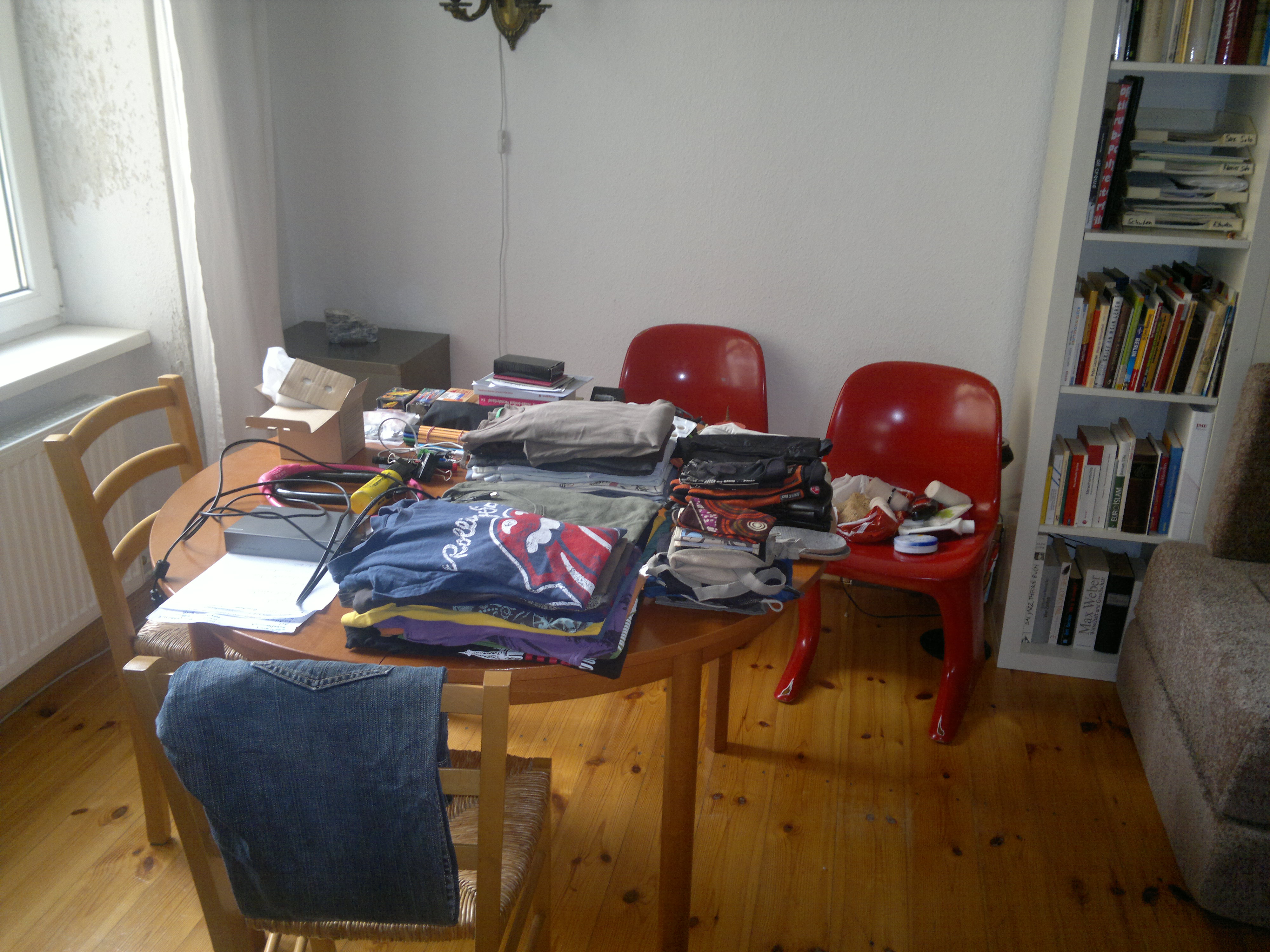 Seis drum, wir packen also jeder einen Stapel mit Dingen, die mitsollen.