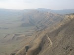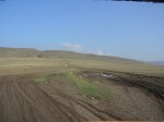 Das mag daran liegen, dass wir uns mitten im Azerbaidschanisch-Georgischen Grenzgebiet befinden oder aber auch daran, dass dieser Weg offenbar nur von Ein heimischen Großbauern und Militär befahren wird. An jeder Gabelöung fragen wir, ob wir noch richtig sind und wie durch ein Wunder sind wir nur einmal falsch abgebogen und landen vor dem Schlagbaum eines Militärpostens, der quer über das Gelände gelaufen kommt um Robert, der mit der Karte wie mit einem weißen Tuch wedelt, entgegen zu rufen: Garedscha? Der nickt, bekommt einen Fingerzeig die steilste Schlammpiste im Panorama hinauf, setzt sich zurück hinters Steuer und seufzt.