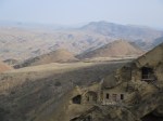 Die Klosteranlage selber erschliesst sich uns nur langsam und bleibt auch am zweiten Tag eher enttäuschend im Verhältnis zur Lage. In einen großen sandsteinernen Bergrücken sind Höhlen so geschlagen worden, dass sie von Weitem nicht auszumache sind. Das Kloster ist seit dem Mittelalter bewohnt von Mönchen, die auch die Wehrburg dazu gebaut haben. Vorder- und Hinterseite des Berges sind von Höhlen durchdrungen, von denen man leider die wenigsten begehen kann. Wir vermuten, dass der ganze Berg durchlöchert ist und das Höhlensystem einst mit ausgeklügelter Belüftung und Bewässerung versehen war, aber zu sehen bekommen wir das nicht. Stattdessen unternehmen wir eine Wanderung um den Berg herum und geniessen den Blick und die Weite und die Ruhe, die dieser Ort ausstrahlt.