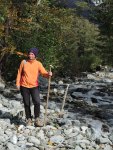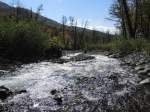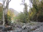 An zwei Tagen wandern wir erst den einen, dann den Anfang des anderen gut ausgeschilderten Wanderweges und freuen uns über die klare Luft. Die Wege sind nicht einfach zu laufen, sie führen teils durch weite steinige Flußtäler, die von den Quellen des KAuskasus gespeist werden. Dann wieder geht es sehr steil bergauf durch den spätherbstlich rotbraun und gelb gefärbten Laub-Urwald. Früher als sonst hat es in den Bergen geschneit und wieder getaut, so dass die Holzbrücken über die Flüsse von kleinen reißenden Bächlein fortgespült wurden und wir uns nun unseren Weg selber bahnen müssen. Wir treffen nur wenige andere Wanderer. Nur ein junges Paar aus Odessa wagt es, mit Zelt, Isomatte und Schlafsack ausgestattet, die dreitägige Bergtour zu laufen. Deren Anfang haben auch wir uns erwandert und bereits auf halbem Weg bei schönstem Sonnenschein aber klirrender Kälte entdecken wir Eiskristalle ind er Luft, die aus schweren schwarzen Wolen, herübergetrieben werden. Wir sind froh, nur Tageswanderunmgen unterneommen zu haben und drücken den beiden Russen die Daumen, dass sie nicht in einen Schneesturm ge raten sind. Denn am nächsten Morgen ist es 0,5 Grad im Maggi und die Spitzen des Kaukasus sind weiß.