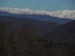Nach dem glatten Telavi ist uns die Lust auf weitere Weinstraßendörfer vergangen und wir beschliessen unseren Weg auf die georgische Heerstraße fortzusetzen. Robert quält den armen Maggi in knapp 2,5 Stunden über 20 Kilometer eine hoppelige flussbettige Steinstraße hinauf. Nur um im Stäödtchen am Ende der Straße festzustellen, dass der Weg umsonst war, die weitere Strecke gesperrt und die Sperrung mit Polizeipräsenz untermauert. Der einzige Weg, der uns bleibt, ist der nach Tbilissi. Das hätten wir wirklich leichter haben können, ägern wir uns. Einige Kilometer weiter ist der Ärger verflogen, das Staunen über die entfernten weißen Berge aber bleibt. Und so entstehen weitere Schneekuppen-Fotos mit und ohne Maggi.