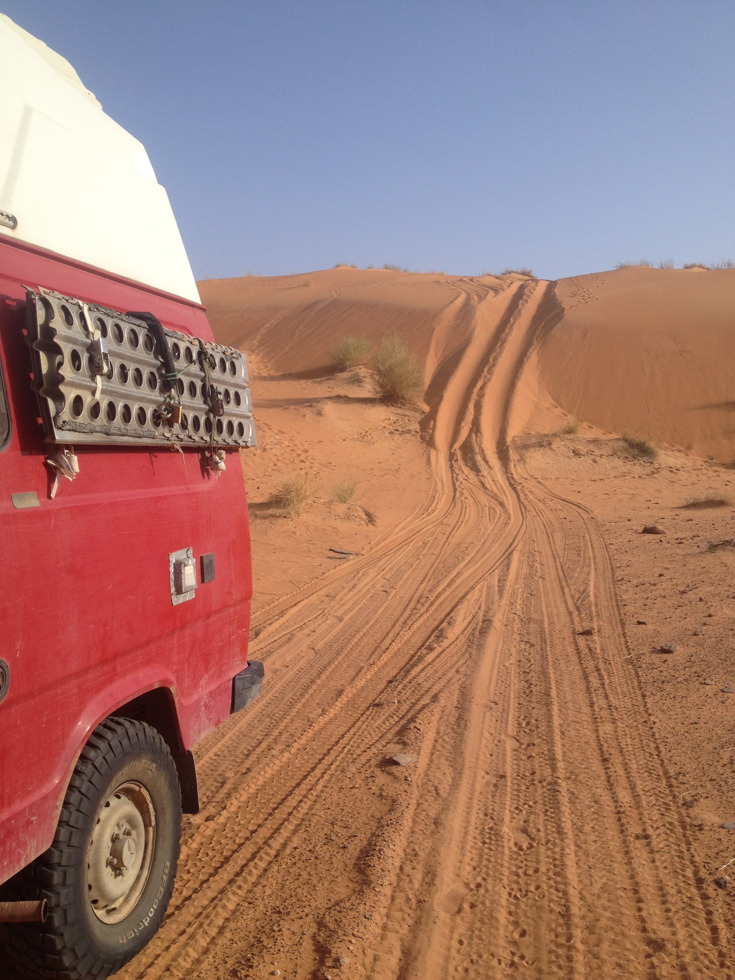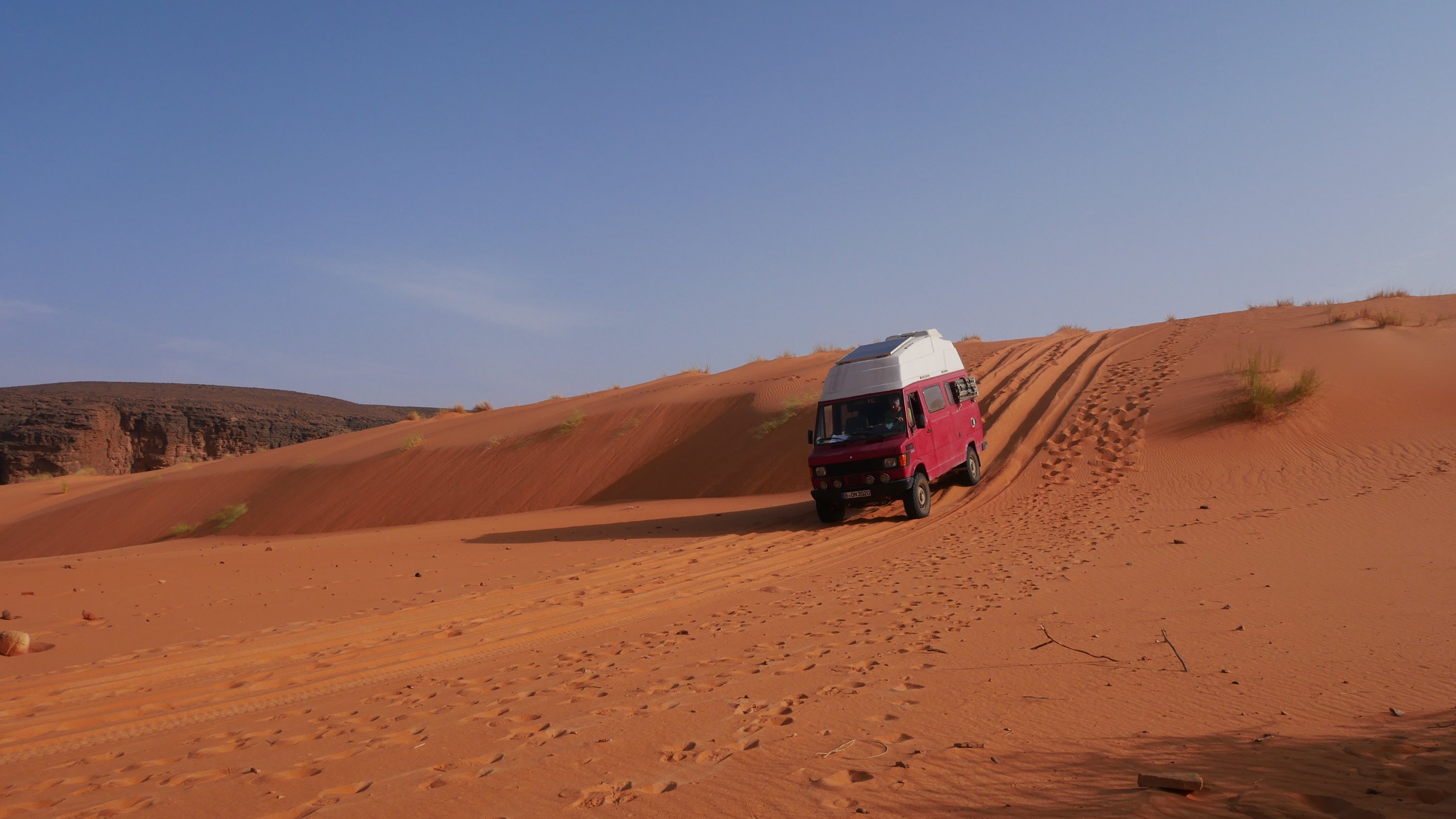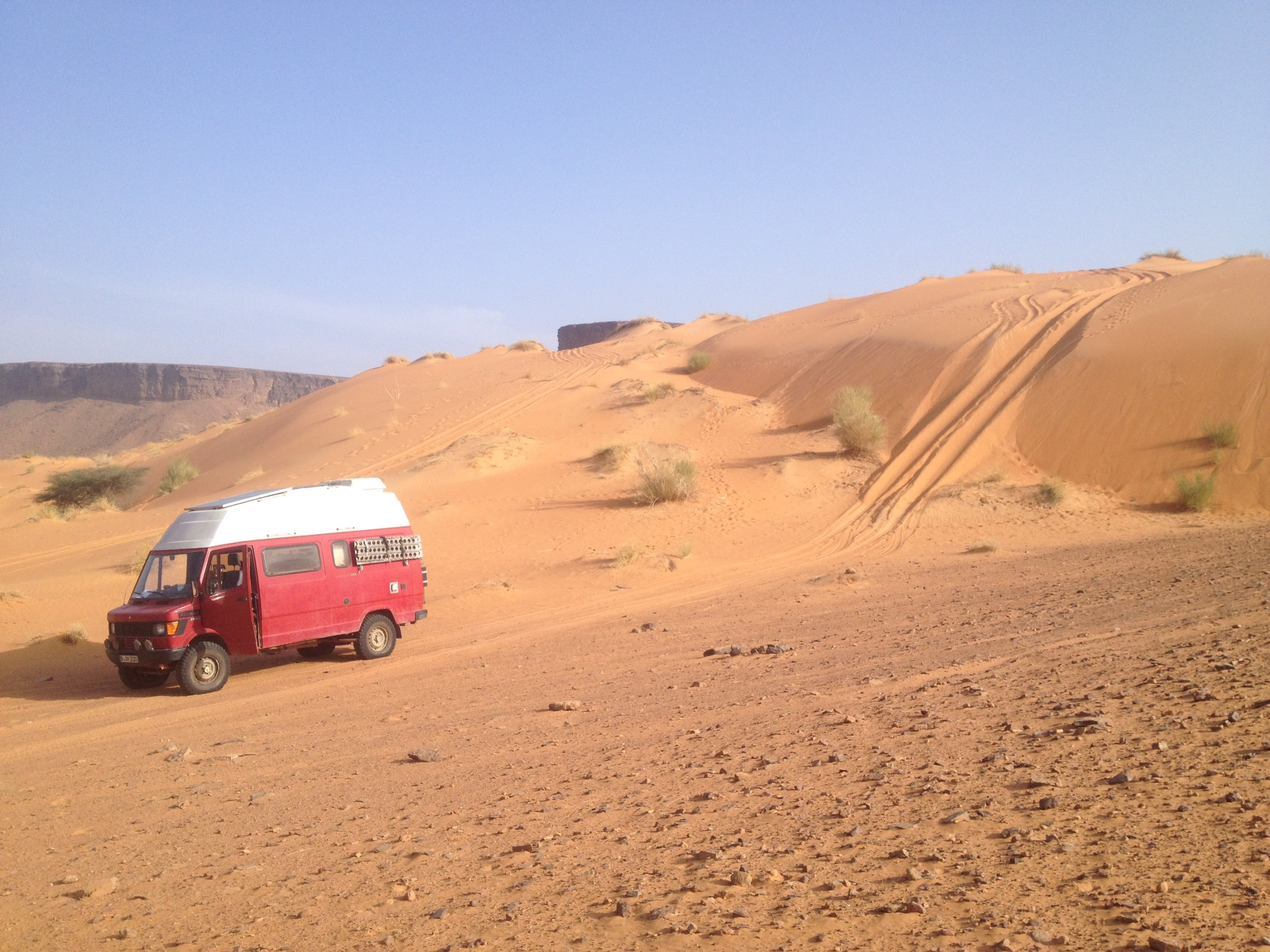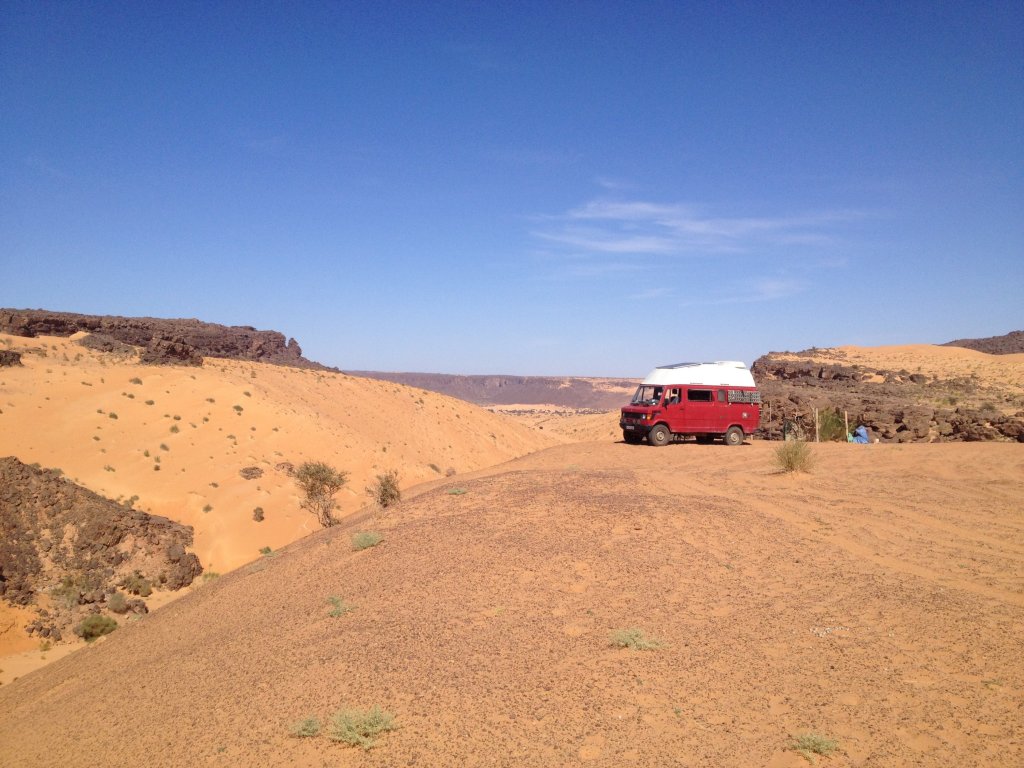Keine frühmorgendlichen Allah Rufe aus der Moschee, kein Esel, der Nachts schreit, keine Wasserpumpe, die von eifrigen Schweizern in überdimensionierten Expeditionsmobilen morgens um 8 angeworfen wird. Keiner, der mit dem Kompressor den Wüstensand aus der Dachfuge bläst und vor Allem: keine guten Ratschläge von mitfühlenden, aber meist eher ahnungslosen Reisenden.