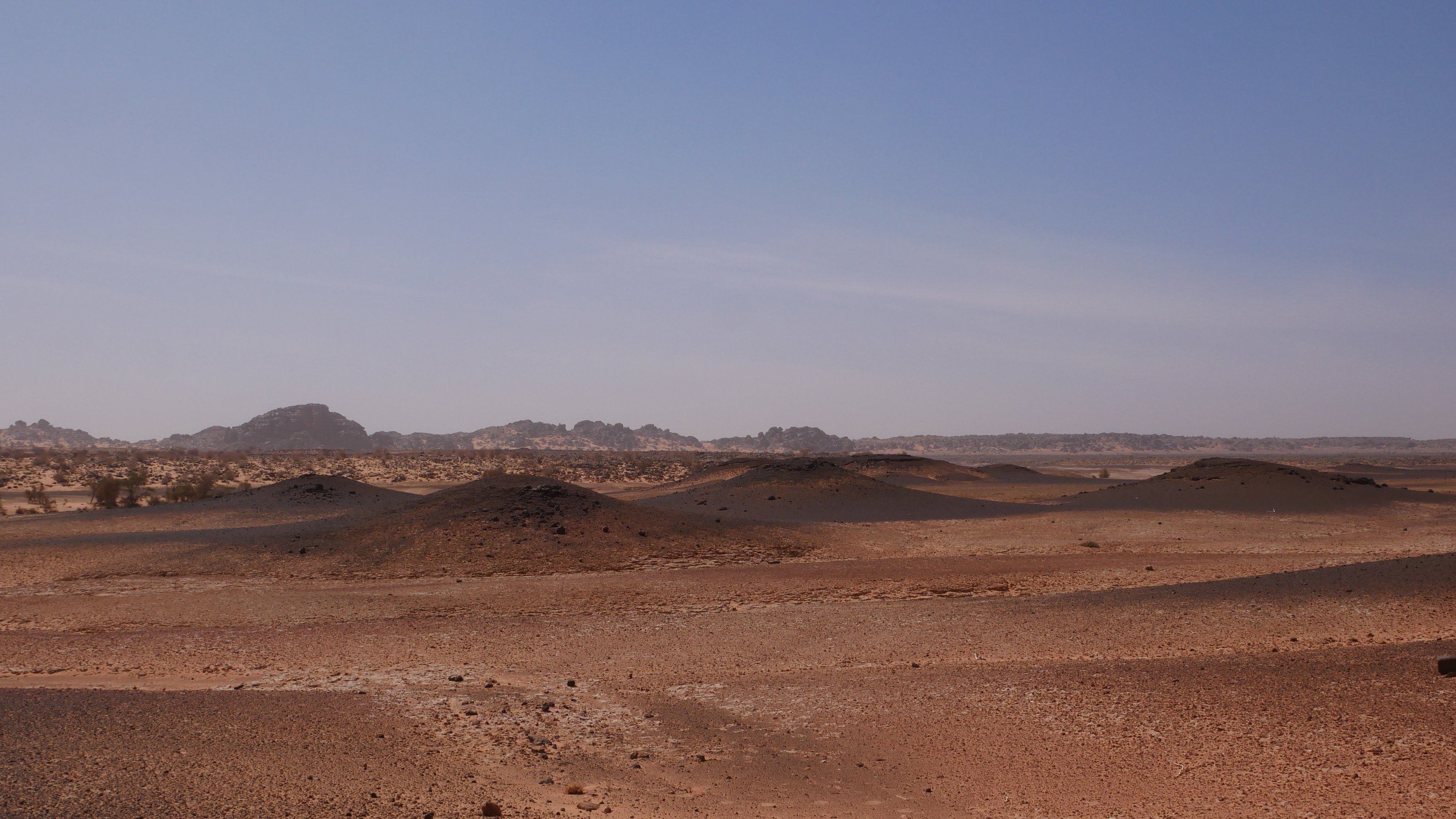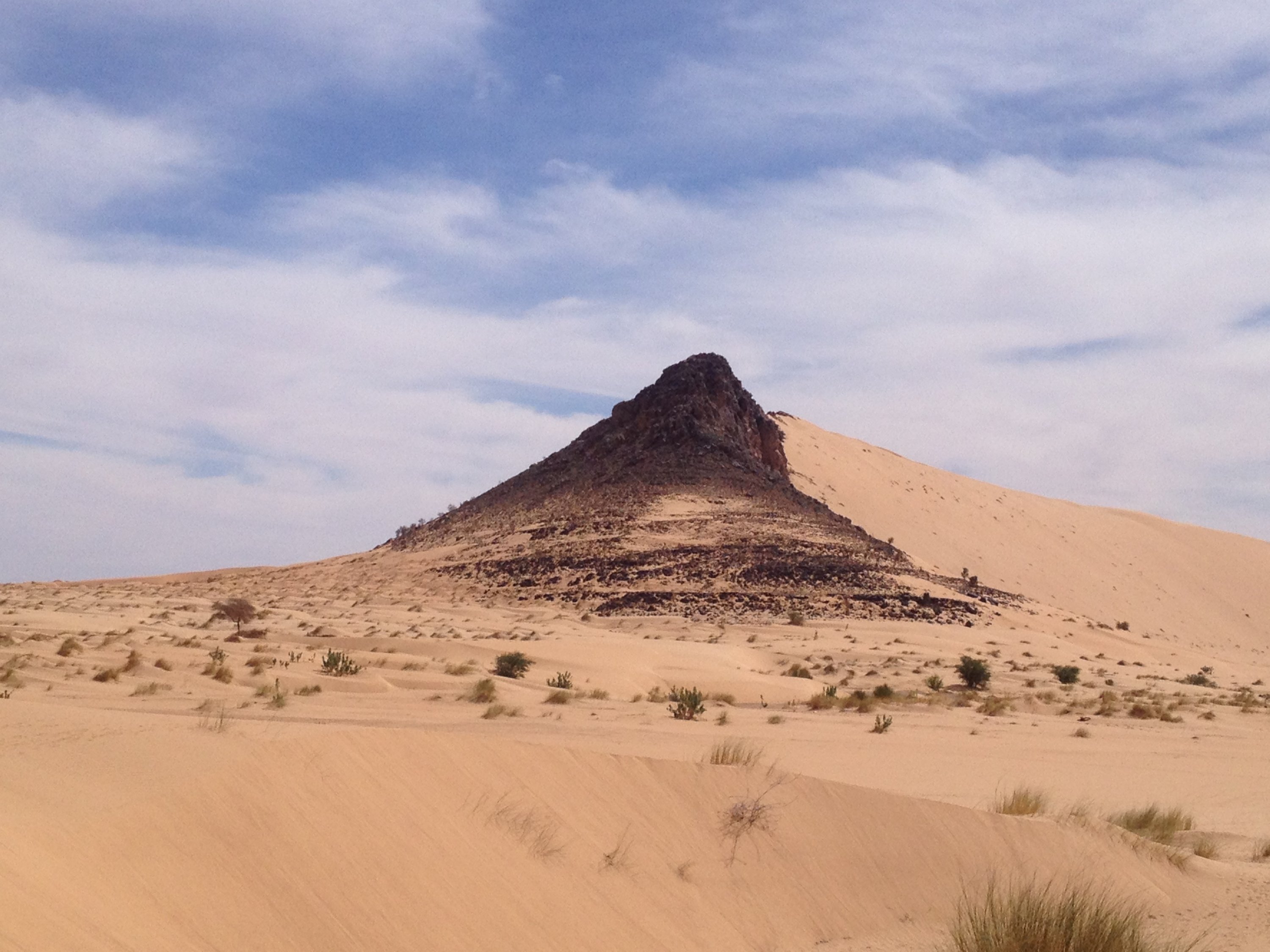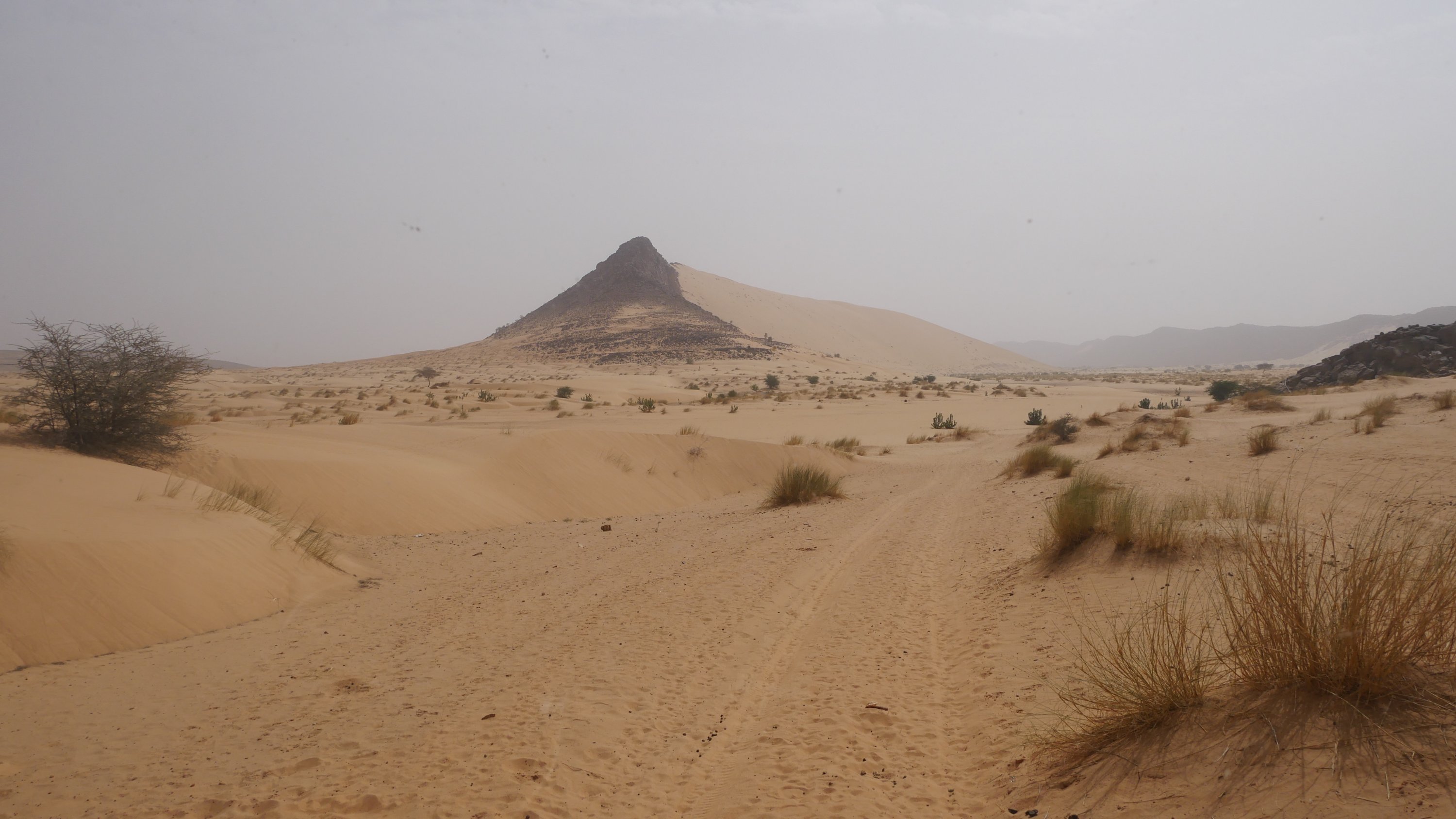 Wir wählen das Vallee Blanche als Ziel, weil es nah an Atar liegt und keine schweren Dünenpassagen hat. Denn so ganz vertrauen wir der Reparatur anfangs noch nicht. Kurz hinter der Abzweigung auf die Teerstraße nach Tidjikja geht die Piste links von der Nationalstraße nach Nouakchott ab. Wir biegen ein und fahren nicht mehr weit, bis wir unseren Schlafplatz für heute nacht entdecken und einfach um 15 Uhr mitten in der Wüste den Motor ausschalten und stehen bleiben.